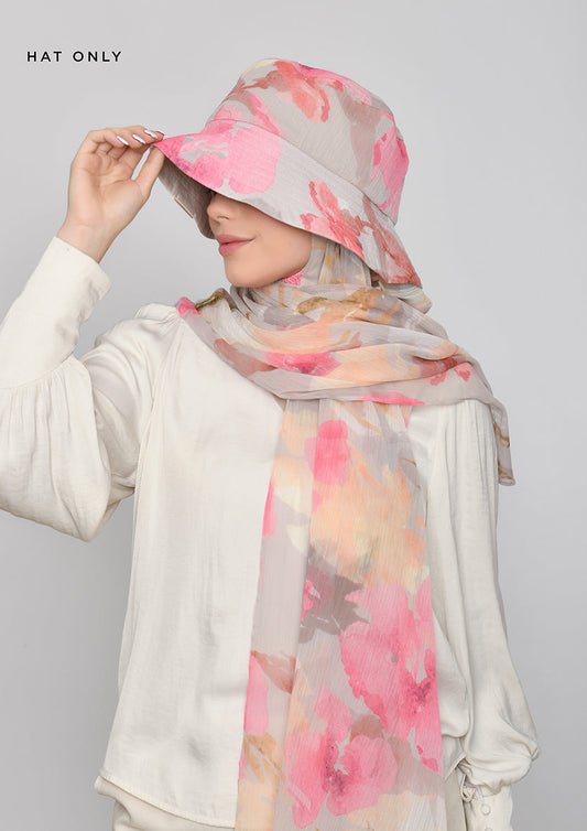 Zahra-Bucket Hat-Printed Crinkled Chiffon