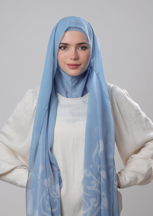 Cloud Blue-Plain Mosaic Butti Chiffon