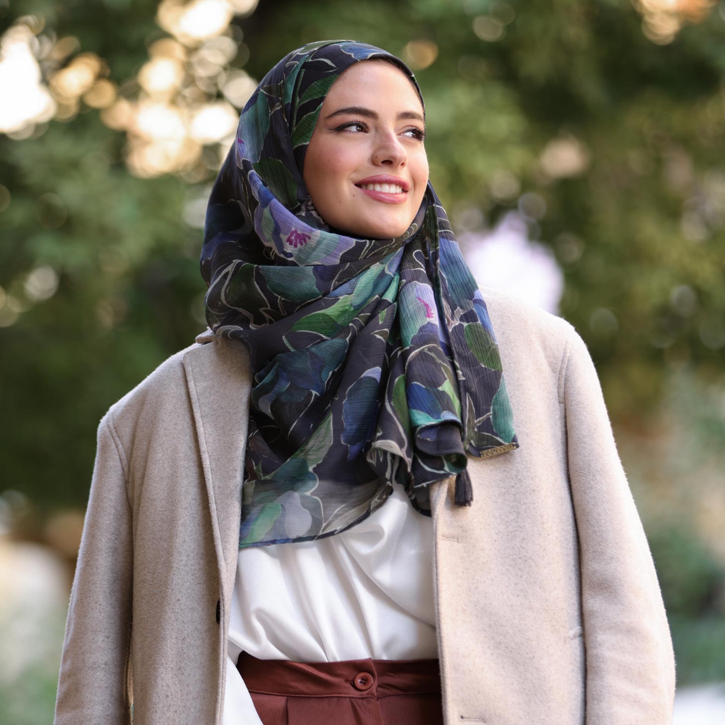 This ready-to-wear designer hijab is made of exclusive lightweight high-quality fabric and lined with 100% cotton voile to ensure breathability and comfort for hijabi women.
