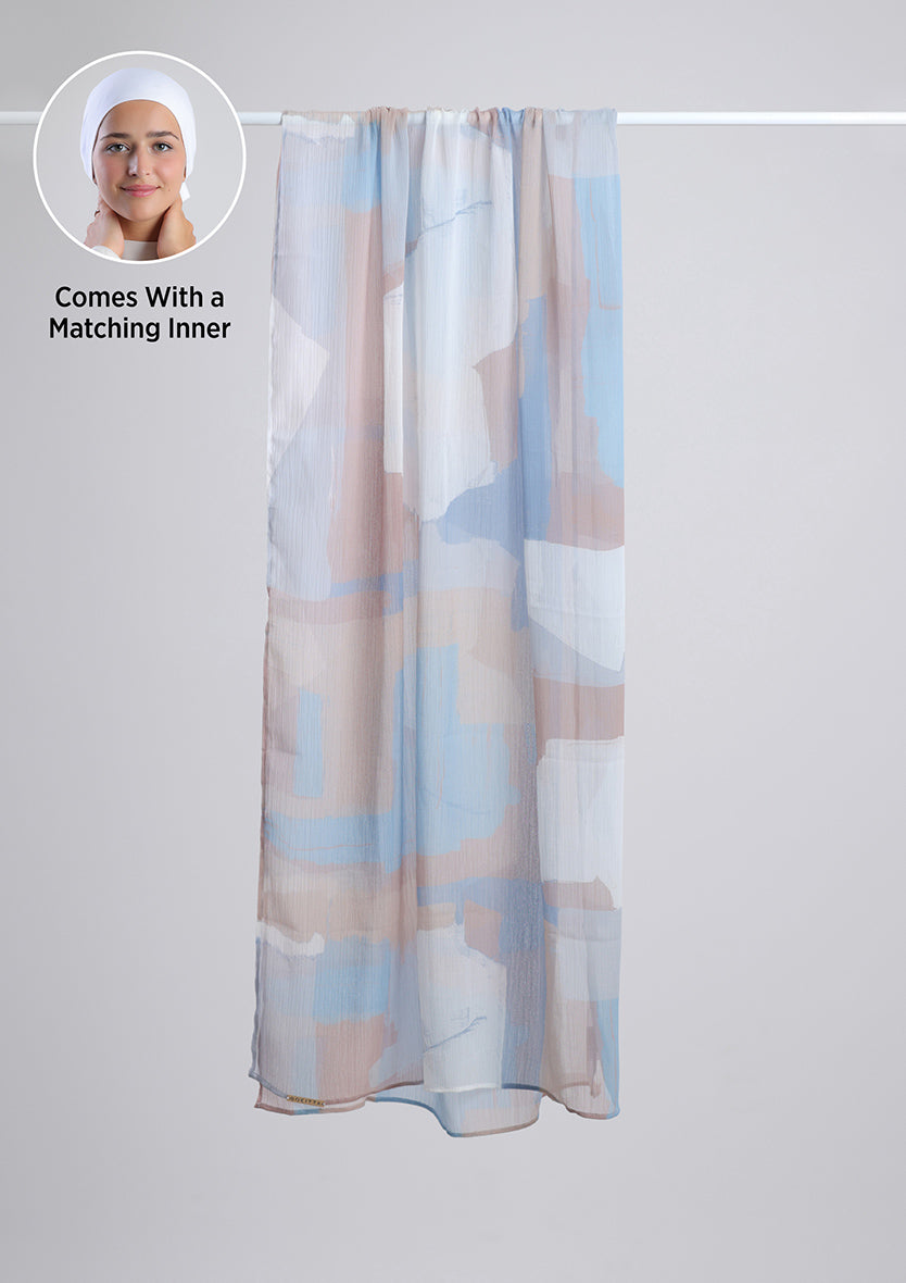 Blueberry Cream- Classic Shawl- Printed Crinkled Chiffon