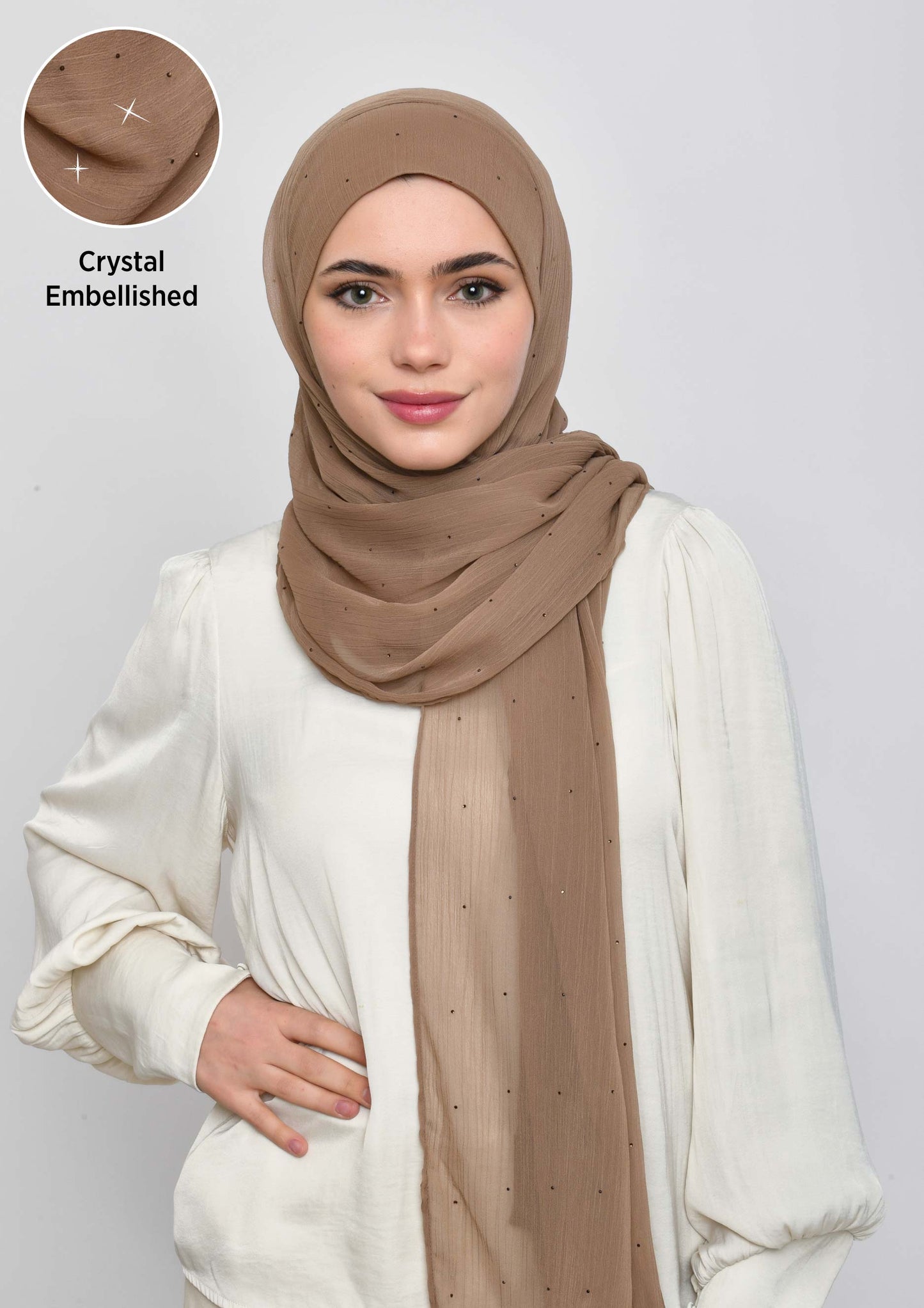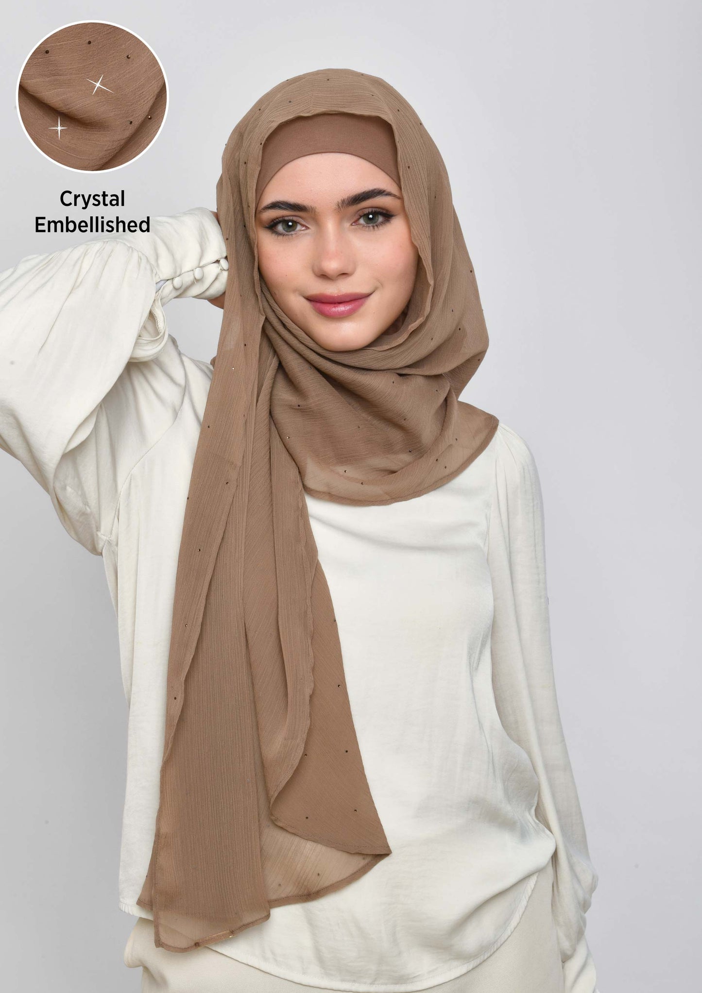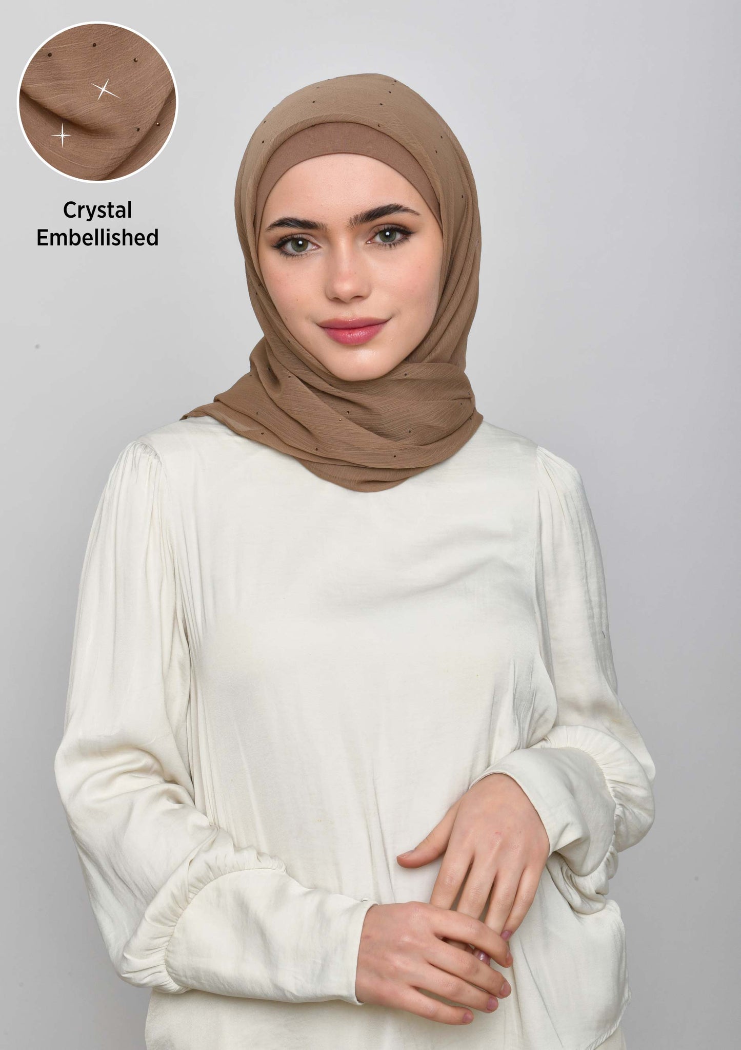 This ready-to-wear designer hijab is made of exclusive lightweight high-quality fabric and lined with 100% cotton voile to ensure breathability and comfort for hijabi women.