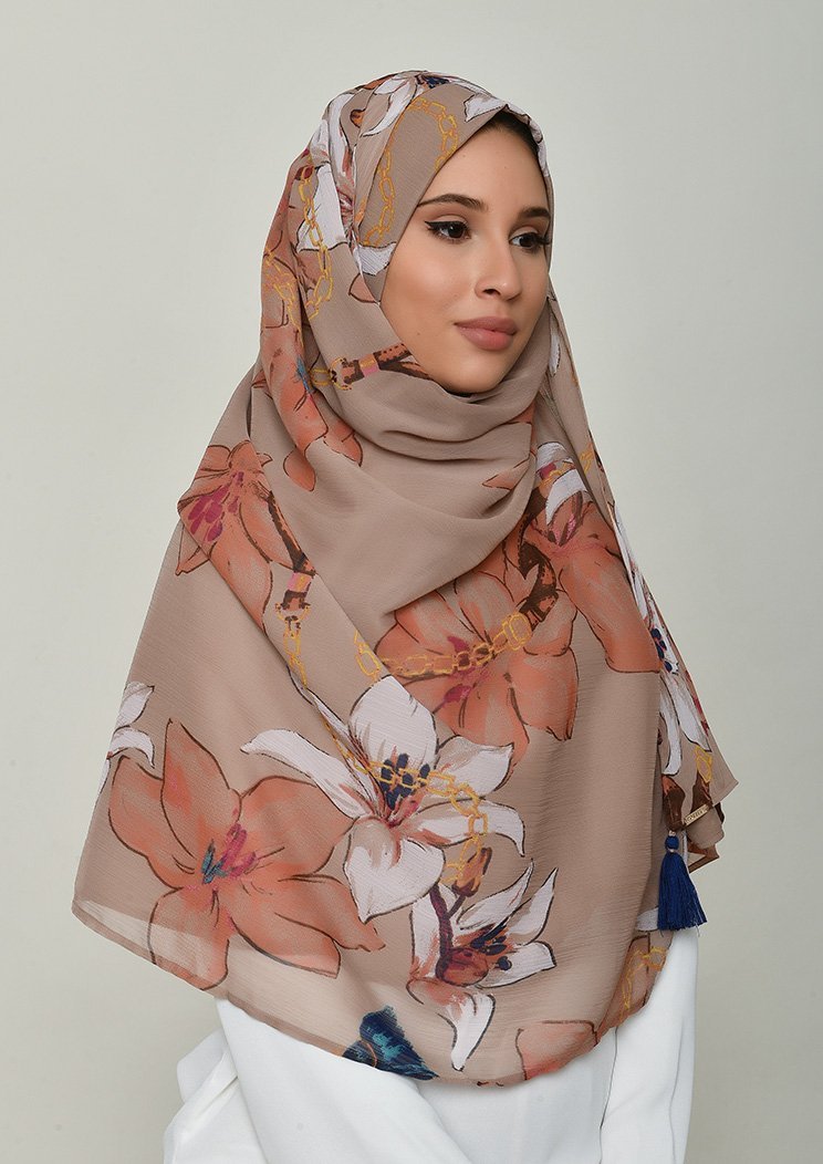 This ready-to-wear designer hijab is made of exclusive lightweight fabric and lined with 100% cotton voile to ensure breathability and comfort for hijabi women.