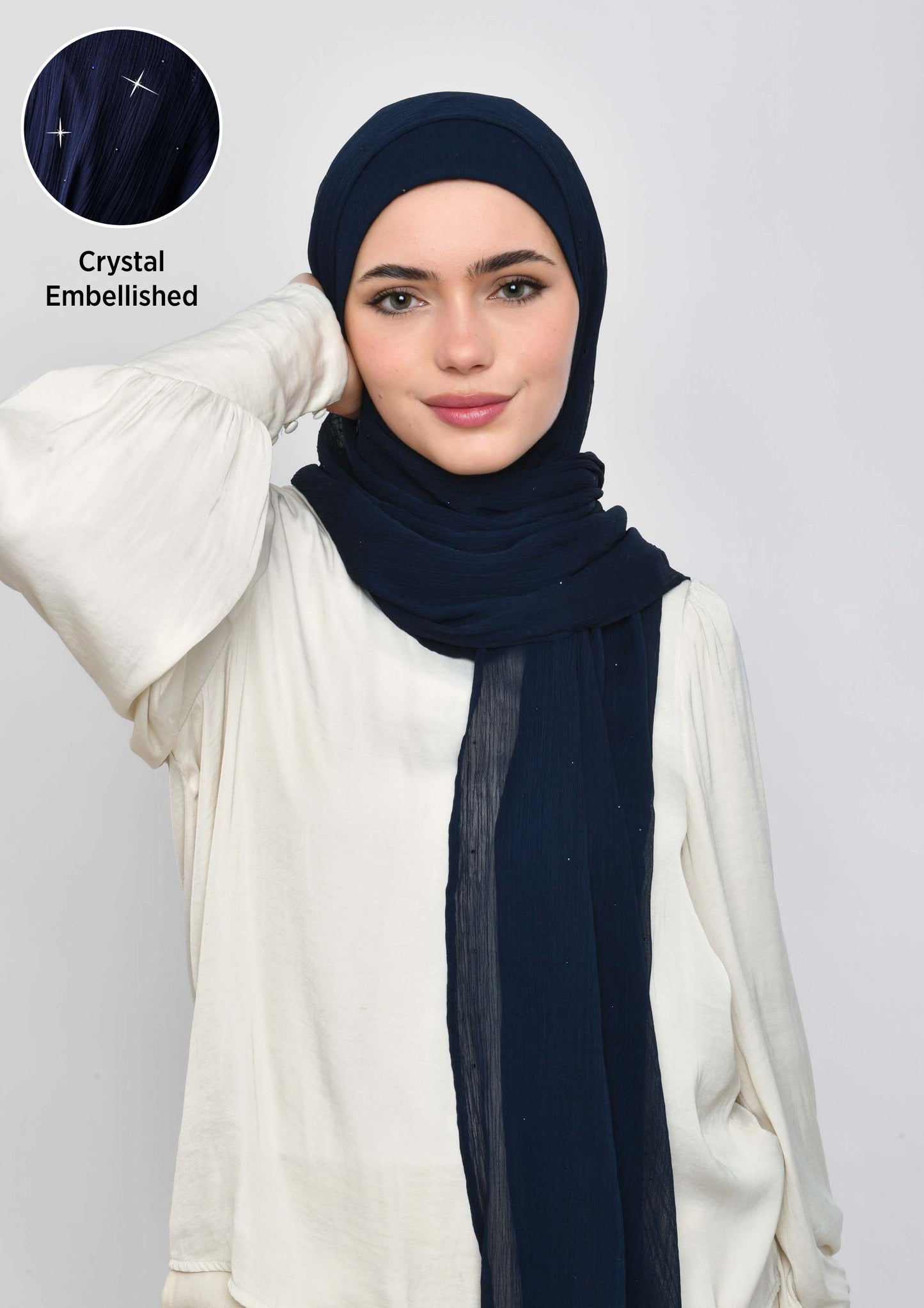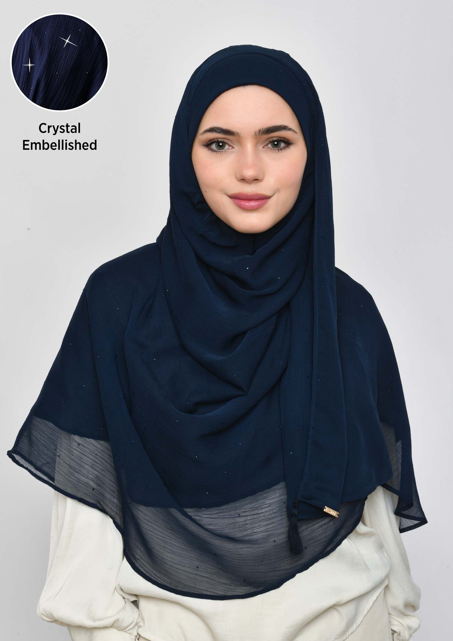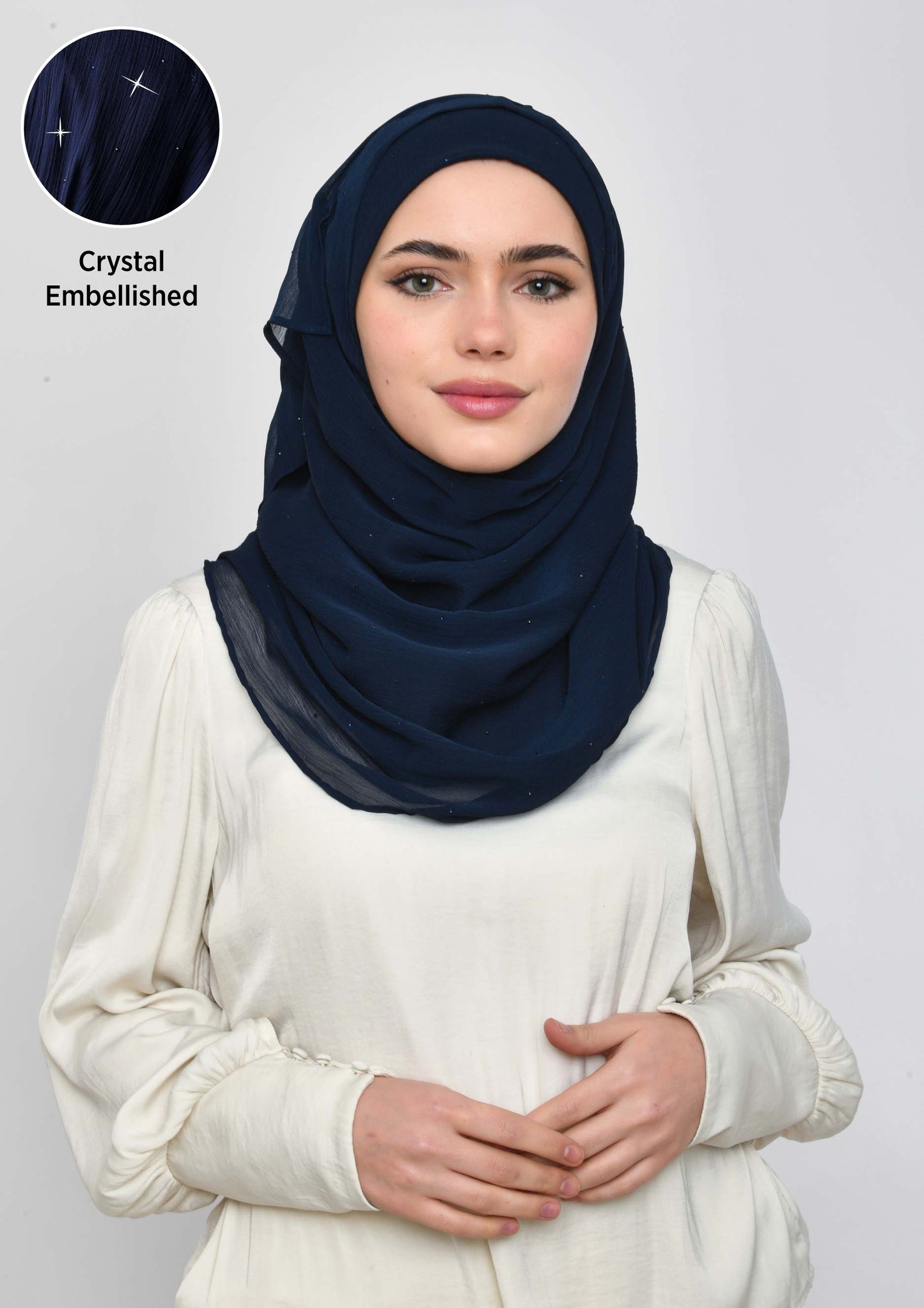 This ready-to-wear designer hijab is made of exclusive lightweight high-quality fabric and lined with 100% cotton voile to ensure breathability and comfort for hijabi women.