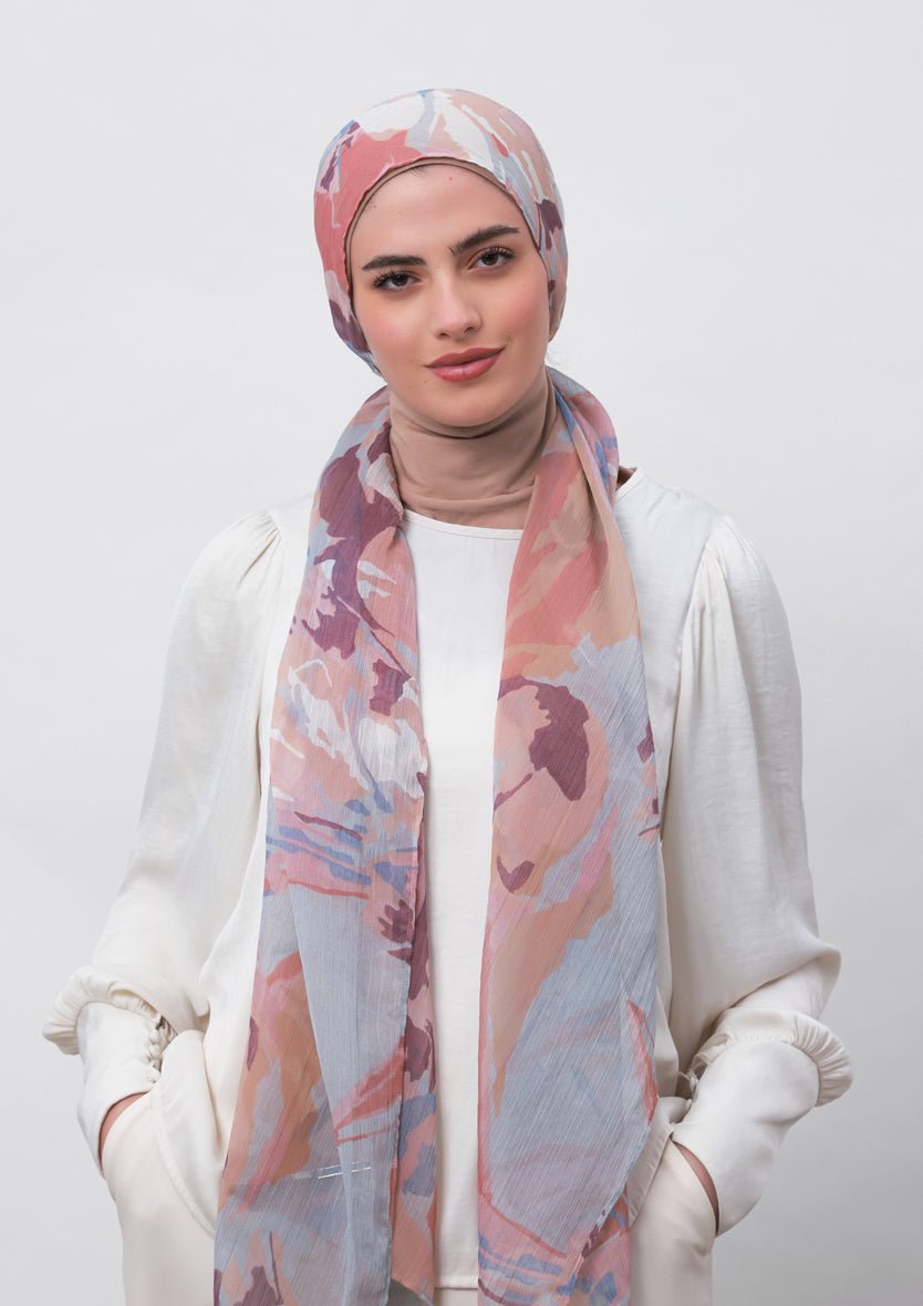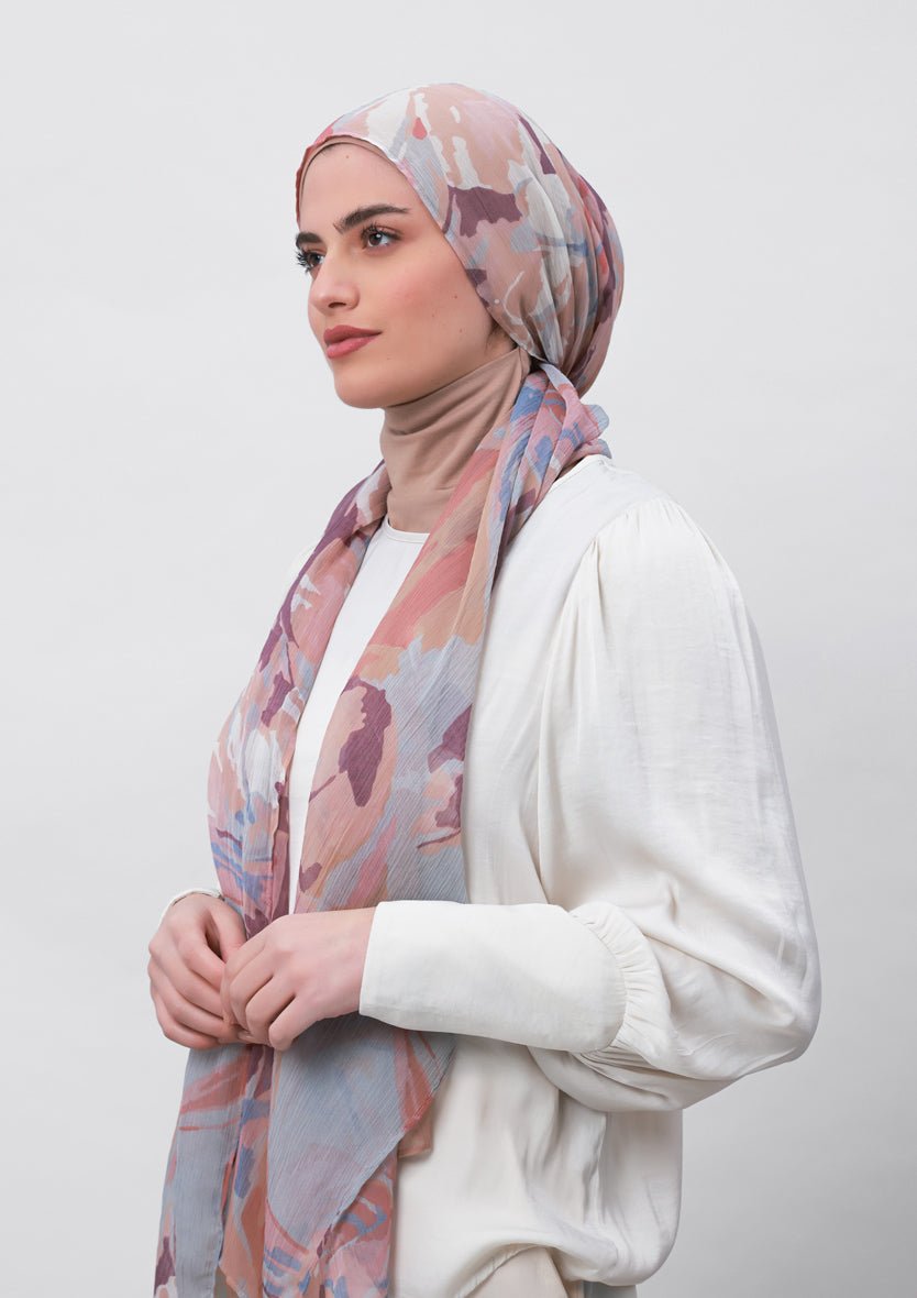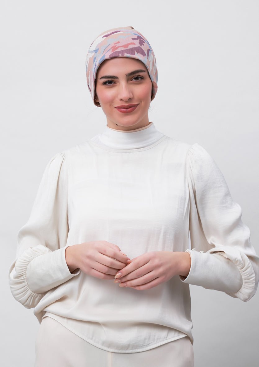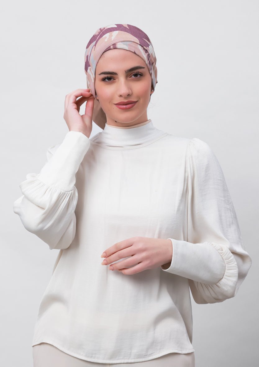 This instant hijab style will let you achieve a loose hijab or a modest turban look in no time. It features an attached full coverage inner that covers the hair and neck.