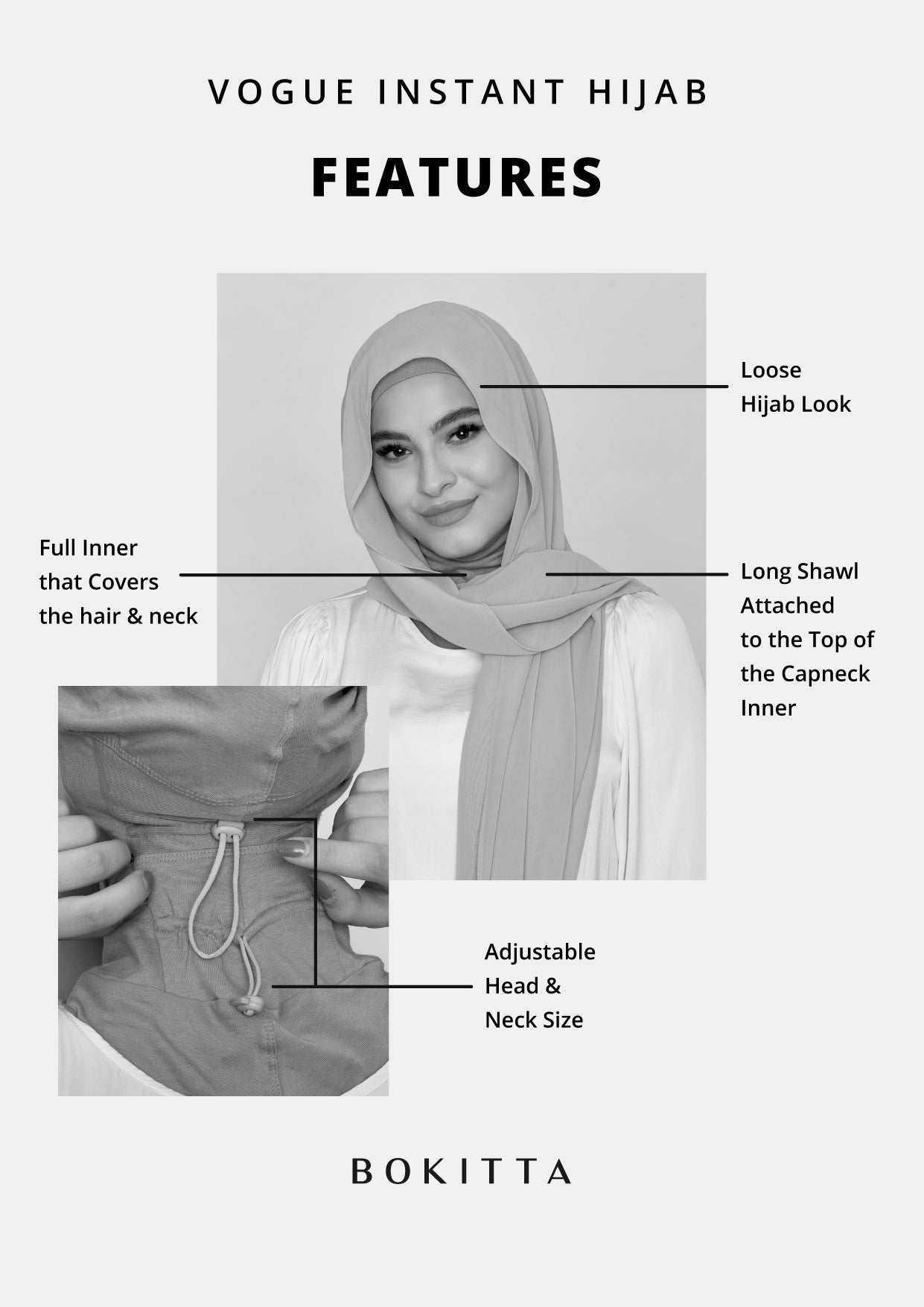 - Pre-sewn hijab design, offering a timeless hijab look.