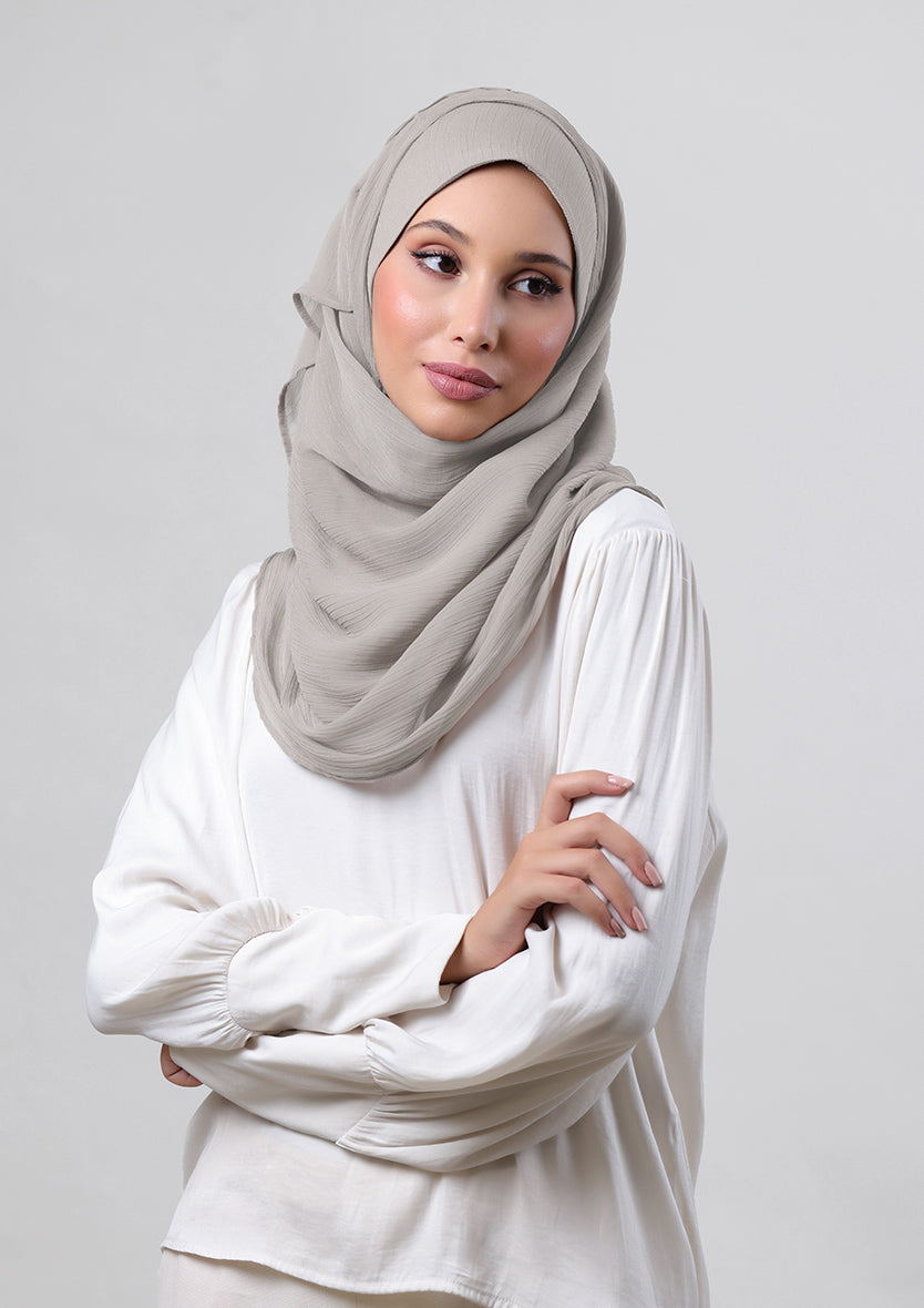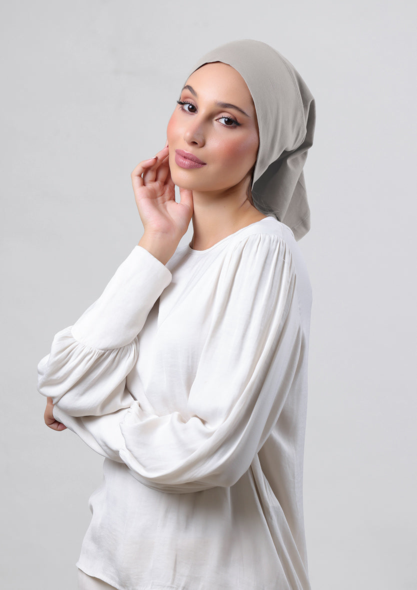 This instant hijab style will let you achieve a loose hijab or a modest turban look in no time. It features an attached full coverage inner that covers the hair and neck.