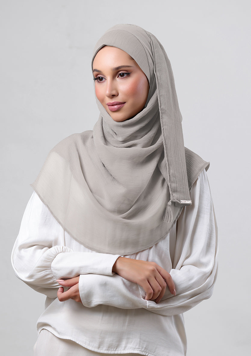 The Carre instant hijab style will let you achieve a neat square hijab look in no time. It features two pointy triangular shawl ends for flexible styling, and an elastic under chin to fit all head sizes.