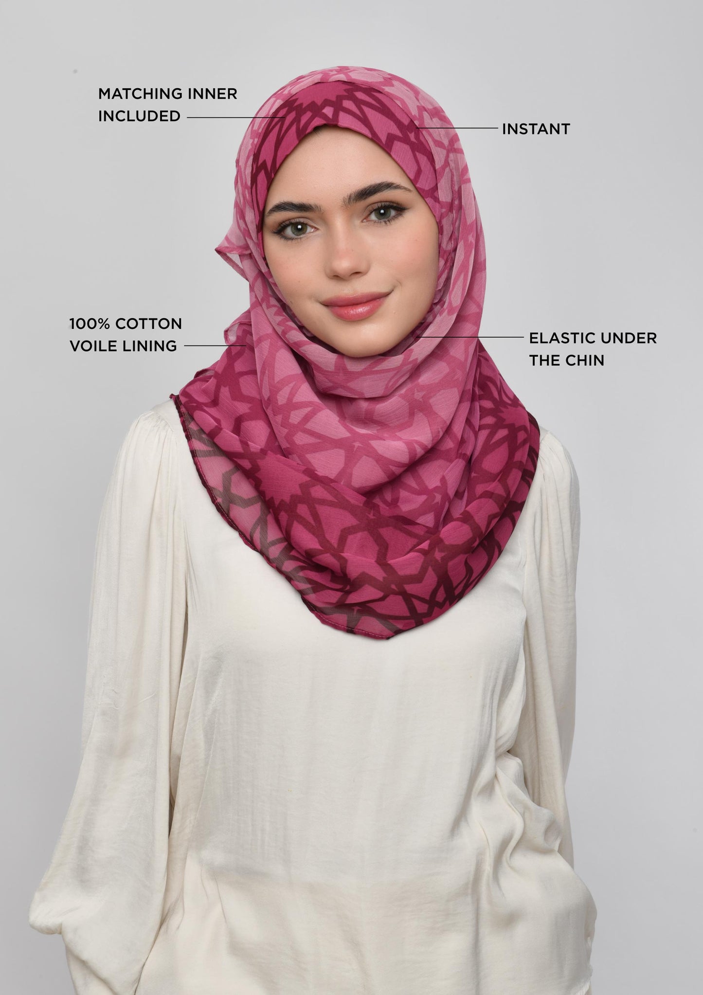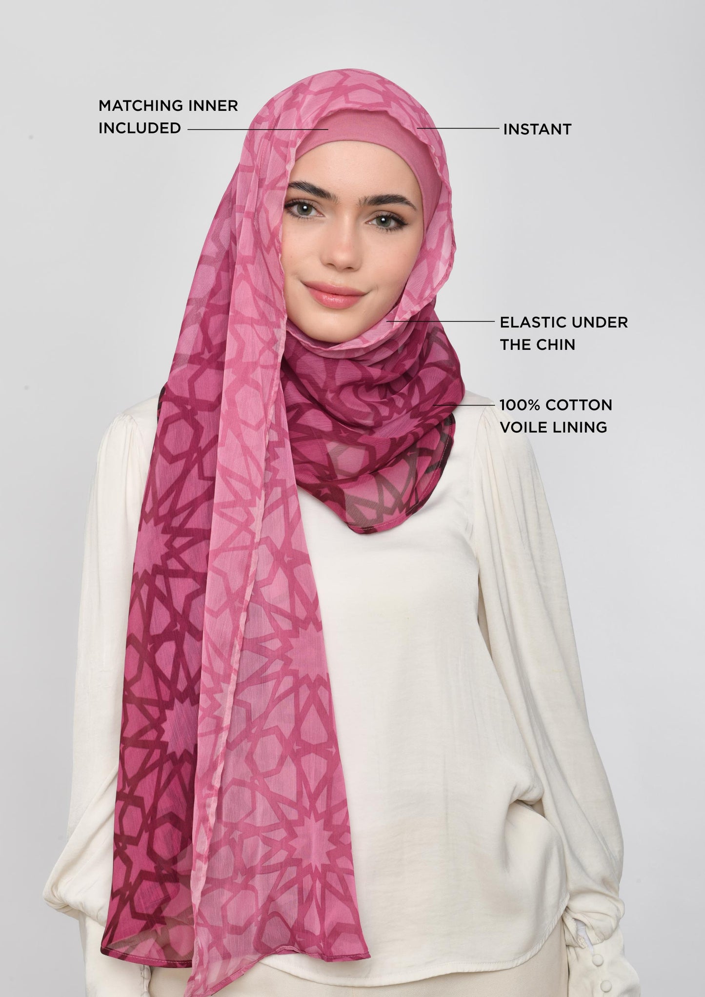- Lined with 100% cotton voile to ensure breathability and comfort for hijabi women.